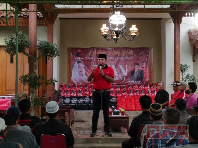 Pada kesempatan yang sama, Eko Prasetyo yang juga selalu KomandanTe Bintang Dua Kabupaten Klaten juga memberikan bingkisan dalam rangka menyambut Hari Raya Idul Fitri dan menyalurkan bantuan beras dari Ketua DPR RI, Mbak Puan Maharani. Beras tersebut akan dibagikan kepada seluruh kader Partai yang ada di tingkat PAC, Ranting, dan Anak Ranting Jogonalan Klaten.