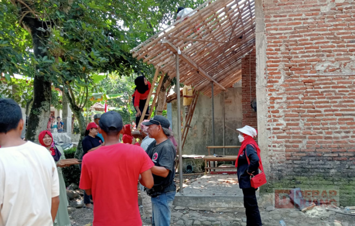 Mengenakan baju khas Partai warna merah, kader banteng bersama warga dengan sigap membersihkan puing-puing sisa kebakaran.