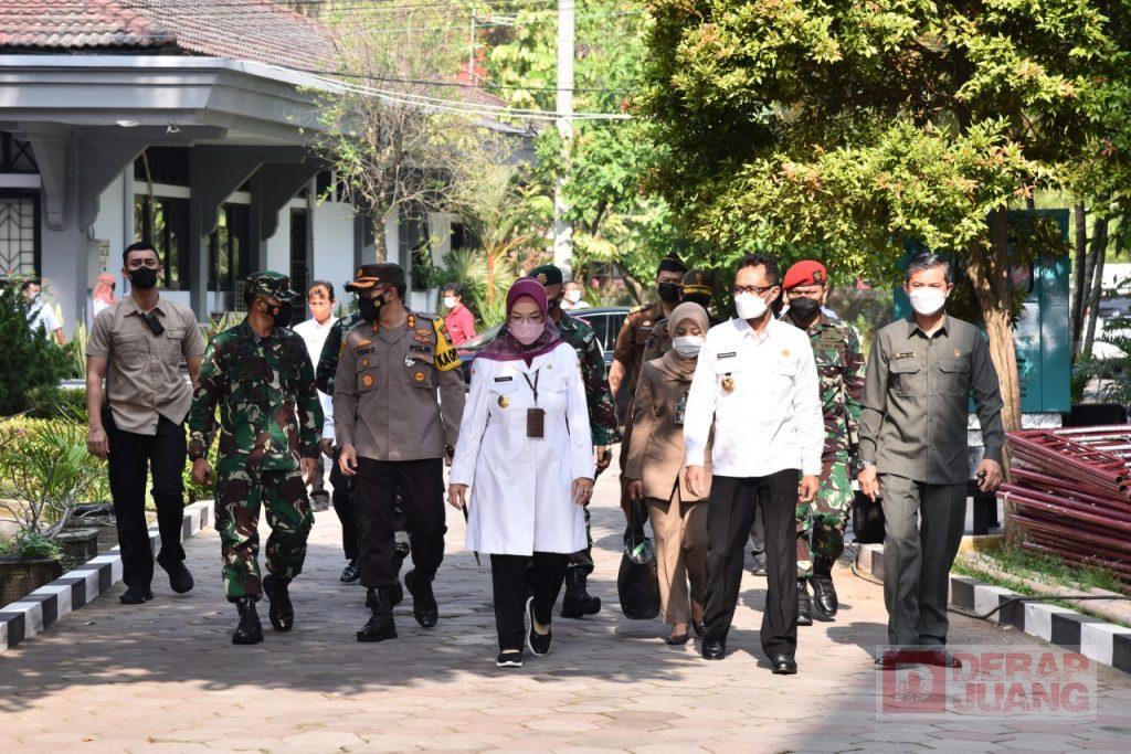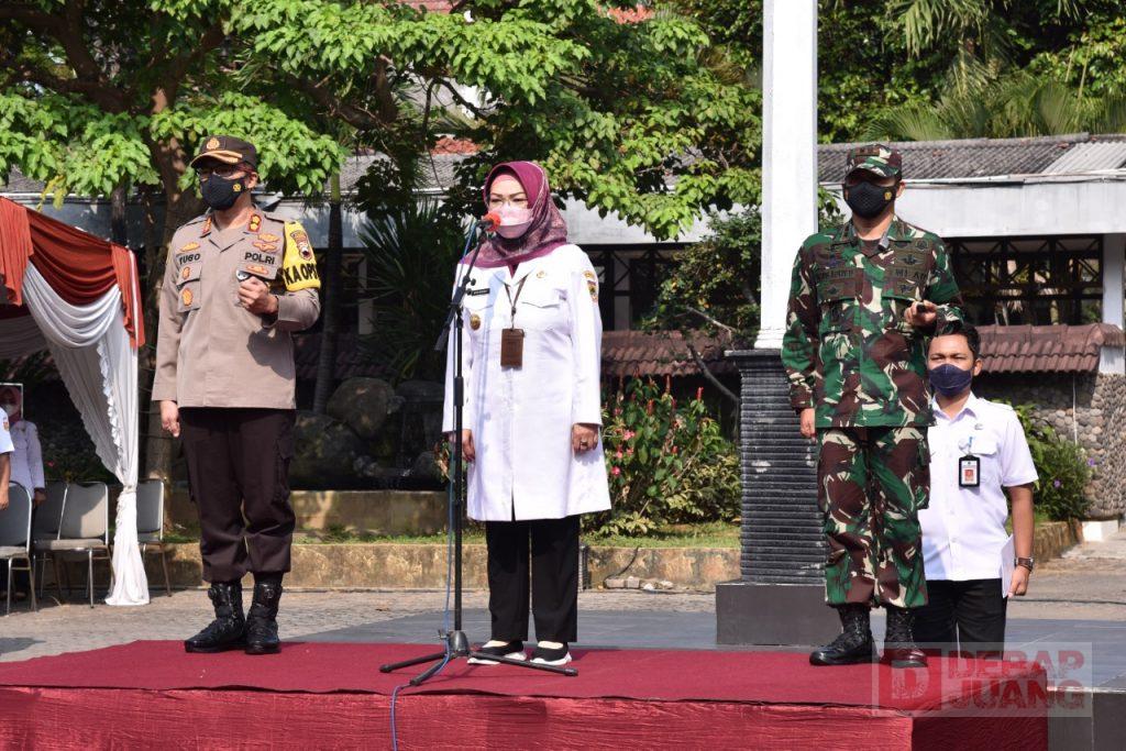 Kabupaten Sukoharjo – Apel Gelar Pasukan Operasi Ketupat Candi 2021 di halaman Pemkab Sukoharjo, Rabu (5/5/2021). Operasi Ketupat Candi akan dilaksanakan 6-17 Mei dengan fokus utama selama operasi adalah penegakan protokol kesehatan terkait corona. Hal itu dilakukan dalam upaya untuk memutus rantai penyebaran virus corona di Sukoharjo.