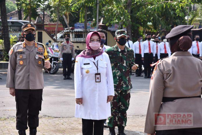 Kabupaten Sukoharjo – Apel Gelar Pasukan Operasi Ketupat Candi 2021 di halaman Pemkab Sukoharjo, Rabu (5/5/2021). Operasi Ketupat Candi akan dilaksanakan 6-17 Mei dengan fokus utama selama operasi adalah penegakan protokol kesehatan terkait corona. Hal itu dilakukan dalam upaya untuk memutus rantai penyebaran virus corona di Sukoharjo.