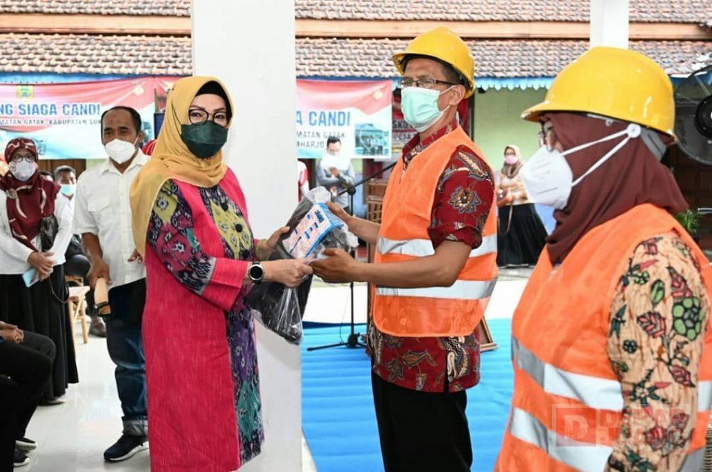 Kabupaten Sukoharjo – Bupati Sukoharjo, Hj. Etik Suryani meluncurkan kegiatan Padat Karya Tunai atau “Cash For Work” (CFW) dalam Program Kota Tanpa Kumuh (Kotaku). Peluncuran dilakukan di Balai Desa Trangsan, Kecamatan Gatak, Sabtu (24/4/2021).