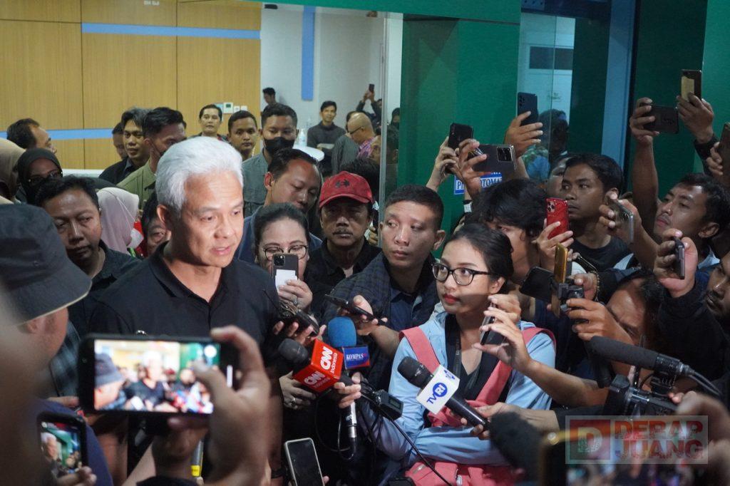 Foto: Ganjar ketika memberikan keterangan kepada awak media pasca menjenguk relawannya.