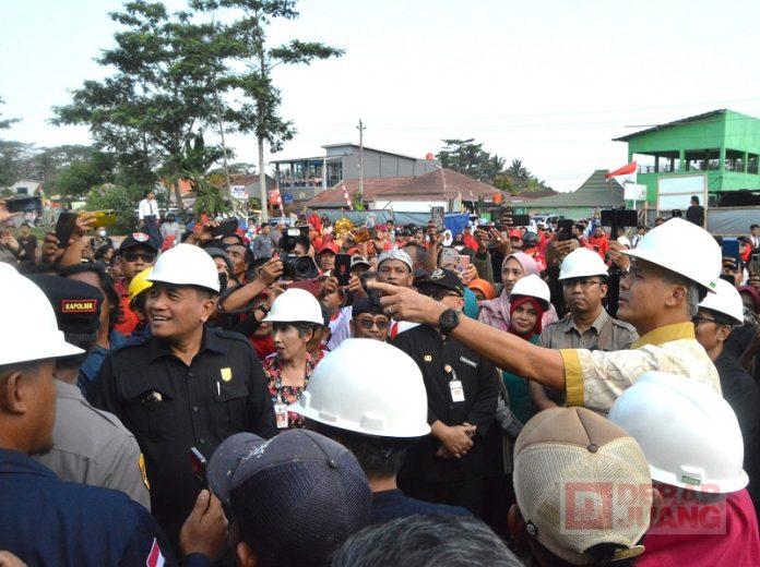 Kabupaten Cilacap – Gubernur Jawa Tengah, Ganjar Pranowo bersama rombongan Pejabat di Pemprov Jawa Tengah meninjau pembangunan Puskesmas Majenang 2, di Desa Jenang, Kecamatan Majenang. Tidak lupa turut mendampingi Ketua DPC PDI Perjuangan sekaligus Ketua DPRD Cilacap Taufik Nurhidayat, Penjabat (Pj) Bupati Cilacap Yunita Dyah Suminar, SKM, M.Sc., M.Si, Sekretaris Daerah beserta jajarannya, Camat Majenang beserta Forkopimcam, serta para pelajar SLTP dan SLTA setempat, Kamis (10/8/2023).