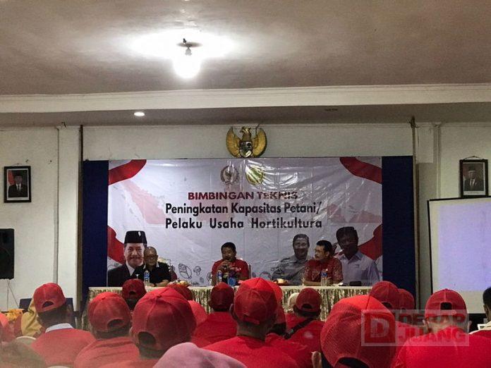 Kabupaten Banyumas – Anggota DPR RI Komisi IV Fraksi PDI Perjuangan, H. Sunarna, S.E,. M.Hum bersama dengan Kementerian Pertanian Republik Indonesia menggelar Bimbingan Teknis (Bimtek) Peningkatan Kapasitas Petani/Pelaku Usaha Hortikultura di Banyumas. Hadir dalam acara tersebut, Kepala Dinas Pertanian Kab. Banyumas, Sekretaris DPC PDI Perjuangan Banyumas, Arie Suprapto, serta peserta dari Kelompok Tani yang berada di Kab. Banyumas, Kamis (14/7/2022).
