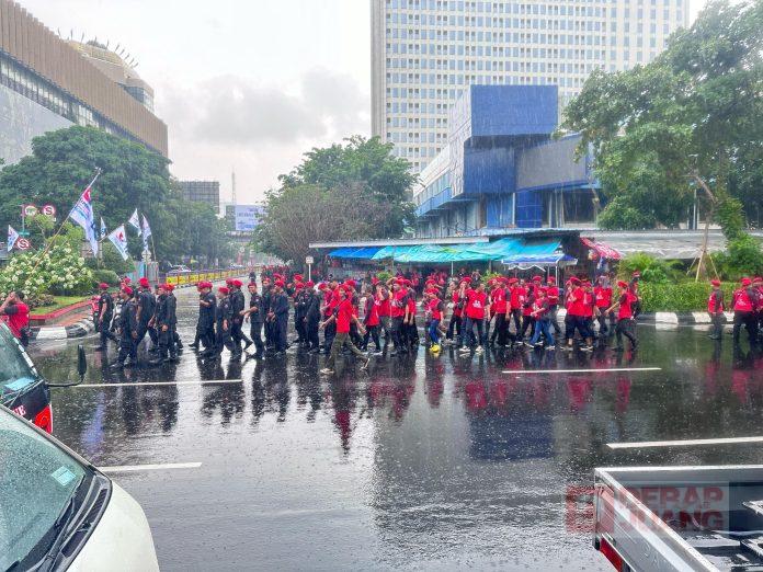 Ribuan personil Satgas nampak terlihat saat apel di kantor DPD PDI Perjuangan Jawa Tengah. Kurang lebih terdapat 3000 personil dikerahkan dalam acara tersebut untuk mengamankan pergerakan Hajatan Rakyat ini.
