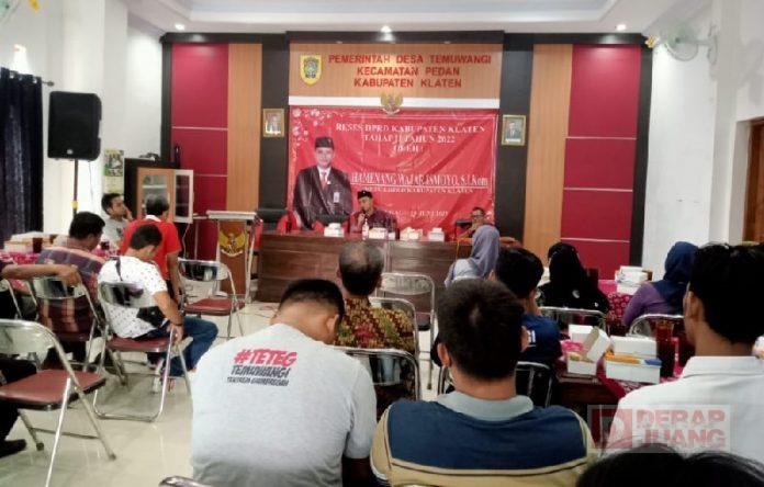 Kabupaten Klaten – Ketua DPRD Klaten, Hamenang Wajar Ismoyo, S.I.Kom menggelar serap aspirasi/Reses Tahap II Tahun 2022 di Desa Temuwangi, Kecamatan Pedan, Jumat (10/6/2022).