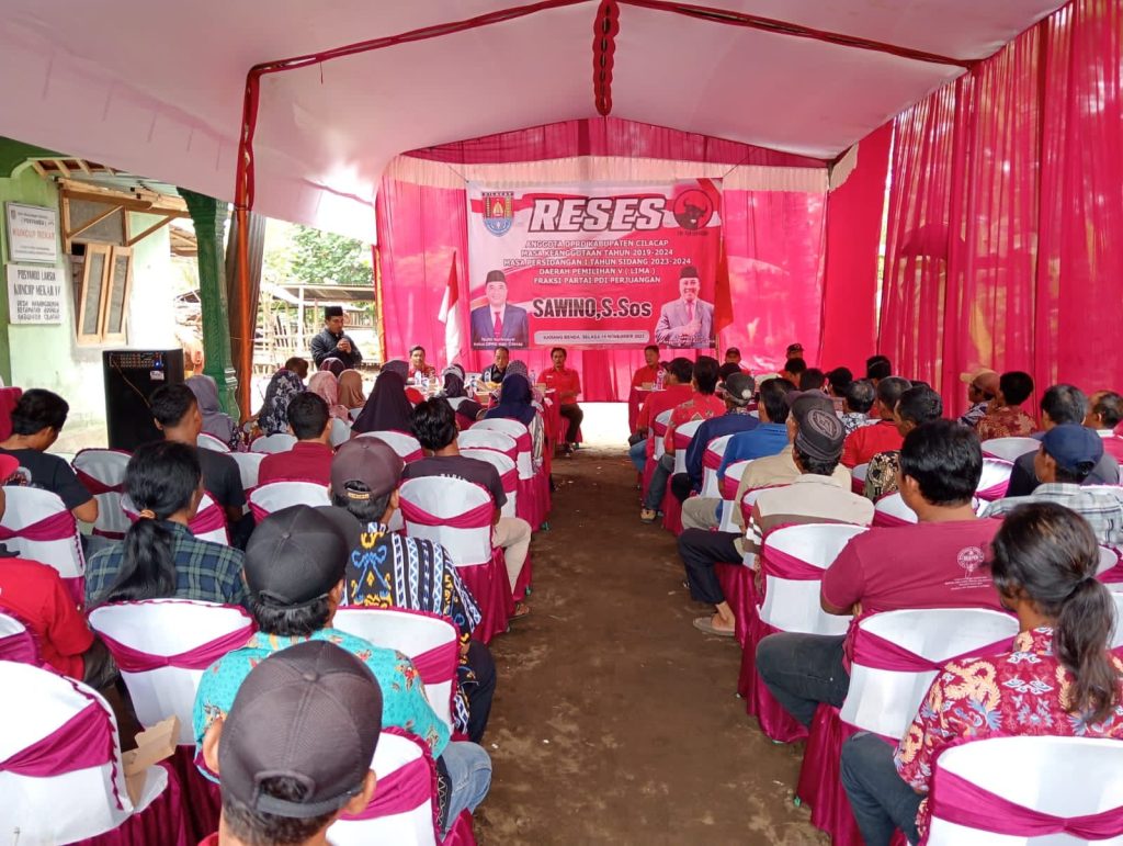 Kabupaten Cilacap – Anggota Komisi A DPRD Kab. Cilacap Fraksi PDI Perjuangan Sawino, S.Sos menyapa warga masyarakat Desa Karang Benda Kecamatan Adipala, dengan menggelar reses di desa tersebut. Turut hadir perangkat Desa Karang Benda, PAC Adipala, serta para warga setempat, Selasa (14/11/2023).