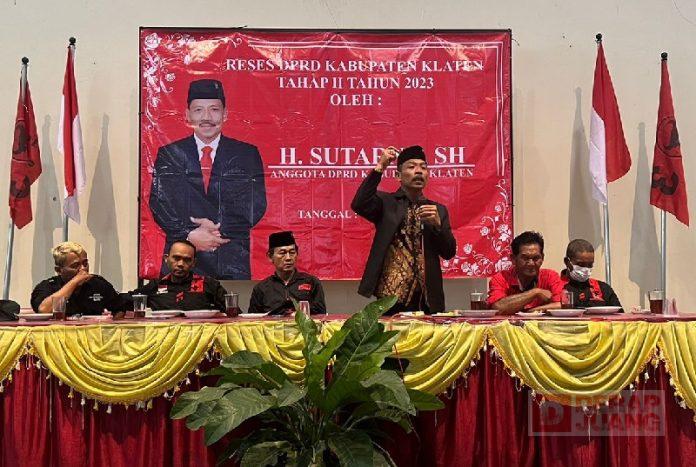 Kabupaten Klaten – Anggota Fraksi PDI Perjuangan DPRD Klaten, H. Sutarna, S.H menggelar Reses Tahap II Tahun 2023 di Desa Kepanjen, Kecamatan Delanggu dan Desa Pundungan, Kecamatan Juwiring, Jumat (9/6/2023).