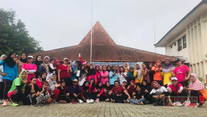 Kabupaten Banyumas – KomandanTe Bintang Dua Dapil 3 Kab. Banyumas pengampu Kec. Kalibagor, Didi Rudianto, S.E., M.Par., melaksanakan senam bersama dengan ibu-ibu yang dilaksanakan di halaman Kantor Kec. Kalibagor, Minggu (26/2/2023).