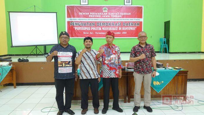 Kabupaten Banyumas – Anggota DPRD Provinsi Jawa Tengah, Fraksi PDI Perjuangan, Dapil Banyumas-Cilacap, Bambang Hariyanto Bachrudin, menyelenggarakan sosialisasi Penguatan Demokrasi Daerah, dengan tema ‘Partisipasi politik masyarakat di Banyumas’.