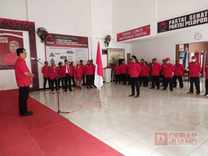 Kegiatan tersebut dihadiri jajaran struktural internal maupun badan sayap partai. Tampak terlihat para kader Komunitas Juang bertindak sebagai petugas upacara.