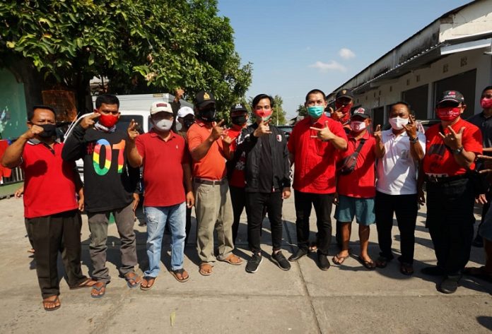 Pada kesempatan itu, para warga dan anggota ranting PDI Perjuangan bersiap melepas petugas yang akan melakukan penyemprotan cairan disinfektan dan penyemprotan nyamuk demam berdarah di perkampungan.