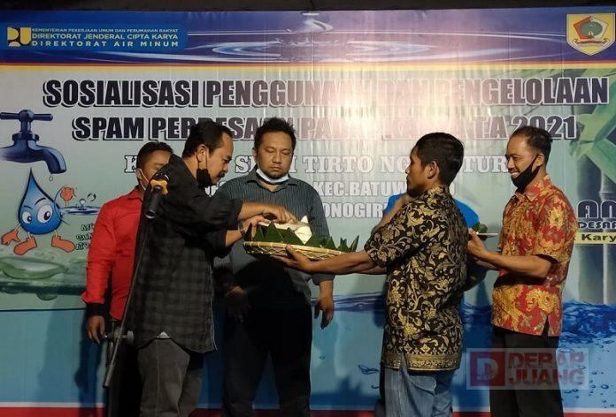 Dalam acara tersebut, Gimanto meresmikan secara simbolis dengan pemotongan tumpeng dan dilanjutkan serah terima pengelolaan air tersebut dari Pemerintah Desa ke Pemerintah Dusun.