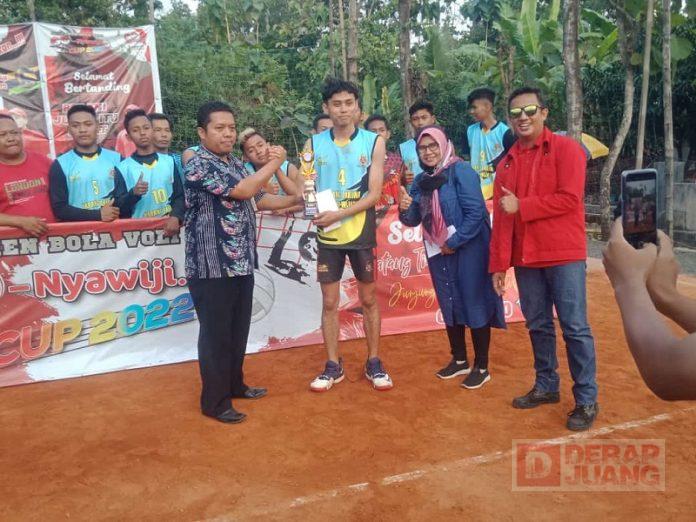 Kabupaten Wonogiri – Welas Handayani yang merupakan KomandanTe Bintang Dua Dapil 5 Wonogiri ikut serta memeriahkan acara turnamen voli Go Nyawiji Cup di Lapangan Desa Sejati. Para penonton juga terlihat antusias menyaksikan pertandingan tersebut di mana para tim yang mengikuti saling berkompetisi dengan menjunjung tinggi jiwa sportivitas, Sabtu (25/6/2022).