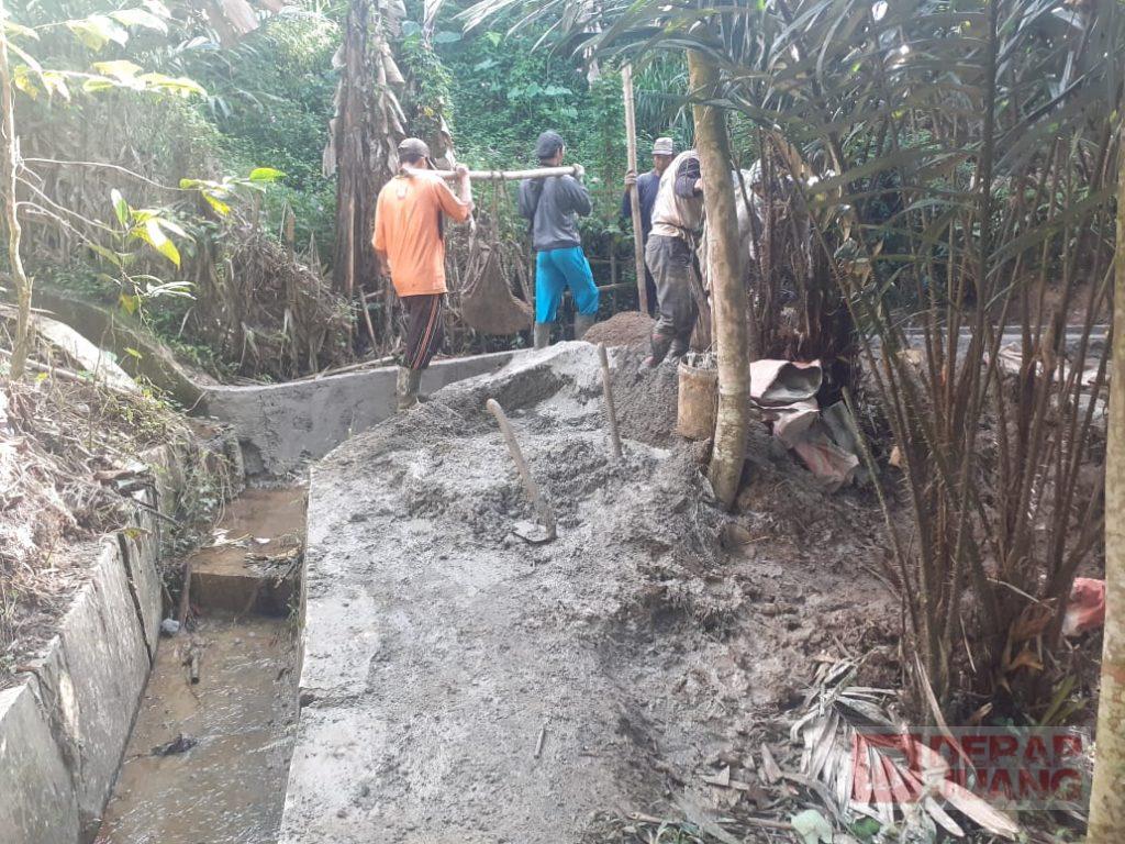 Sugiono menambahkan, kegiatan ini dikerjakan secara swakelola, dengan tujuan agar warga sekitar bisa ikut bekerja. Sebelumnya, warga memanfaatkan sumber air dari pegunungan dengan menggunakan sistem tradisional, sehingga debit air yang mengalir tidak lancar, serta tidak mencukupi kebutuhan warga. Dengan adanya saluran tersebut, distribusi air ke lahan pertanian warga akan semakin lancar.