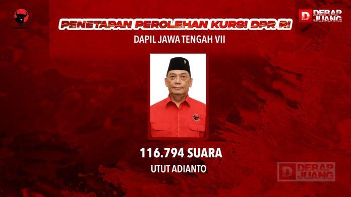 Adapun perolehan suara yang diperoleh Utut Adianto sebanyak 116.794 suara. Ia berada di posisi pertama diantara tujuh kursi yang ditetapkan dalam penetapan Pileg 2024.
