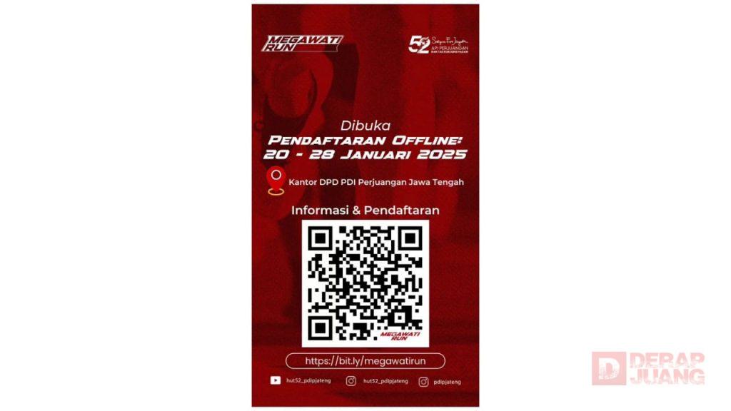 Untuk informasi lebih lanjut dan pendaftaran online dapat diakses melalui link https://bit.ly/megawatirun dan bisa cek di akun Instagram @hut52_pdipjateng.