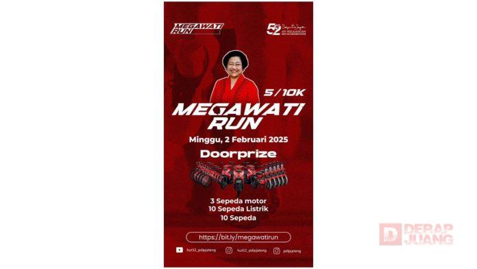 Kota Semarang – Tujuh hari lagi menuju event lari ‘Megawati Run’ yang diselenggarakan oleh Dewan Pimpinan Daerah (DPD) PDI Perjuangan Jawa Tengah (Jateng). Acara yang berlangsung hari Minggu, (02/02/2025) ini menawarkan dua kategori lari, yaitu lari 5K dan 10K, dengan hadiah menarik dan doorprize berupa sepeda motor, sepeda listrik, dan sepeda.