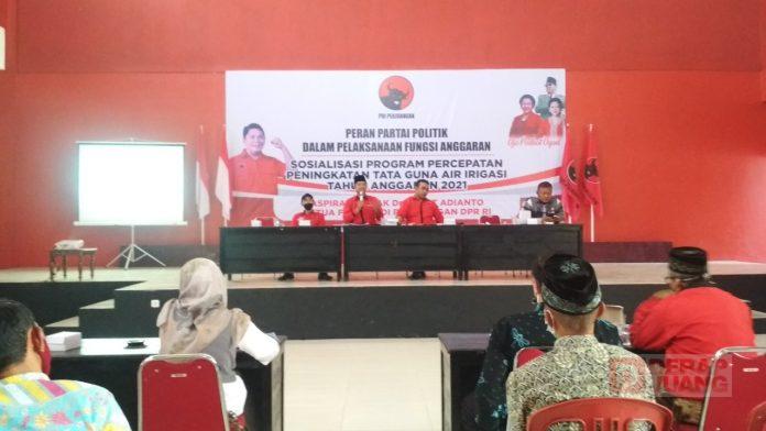 Kabupaten Banjarnegara – DPC PDI Perjuangan Kab. Banjarnegara melaksanakan sosialisasi Program Percepatan Peningkatan Tata Guna Air Irigasi (P3TGAI) tahun angggaran 2021. Acara bertempat di Aula Gedung Panti Marhaen, Rabu (24/3)2021).