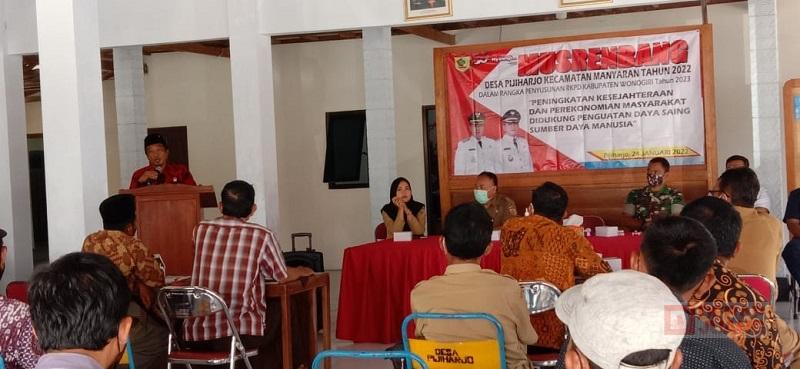 Kabupaten Wonogiri – Musyawarah Rencana Pembangunan (Musrenbang) tahun 2022 Desa Pijiharjo, Kecamatan Manyaran, Kabupaten Wonogiri dilaksanakan pada Senin (24/1/2022). Musrenbang tersebut mengangkat tema “Peningkatan Kesejahteraan dan Perekonomian Masyarakat Didukung Penguatan Daya Saing Sumber Daya Manusia”