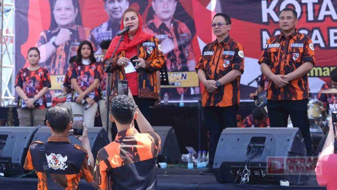 Kota Semarang – Walikota Semarang, Hevearita Gunaryanti Rahayu yang akrab disapa Mbak Ita menghadiri Pelantikan Pengurus Majelis Pimpinan Cabang (MPC) Pemuda Pancasila Kota Semarang di halaman Balai Kota Semarang, Minggu (29/10/2023).