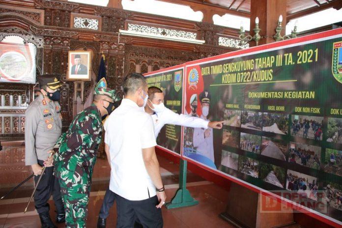 Kabupaten Kudus – Pelaksanan TMMD (Tentara Manunggal Masuk Desa) Kodim 0722/Kudus sudah selesai dilaksanakan. Atas capaian itu, penandatanganan dan serah terima hasil TMMD Sengkuyung Tahap III Tahun Anggaran 2021 juga ikut dilaksanakan secara simbolis di Pendopo Kab. Kudus, Kamis (14/10/2021).