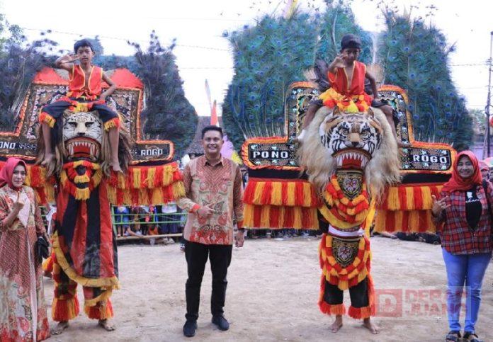 Kabupaten Klaten – Ketua DPRD Klaten, Hamenang Wajar Ismoyo, S.I.Kom bersama dengan Anggota Fraksi PDI Perjuangan DPRD Jawa Tengah, Hj. Kadarwati, S.H., M.H menghadiri acara pagelaran kesenian Reog di Desa Mandong, Kecamatan Trucuk, Minggu (30/4/2023). Adapun Pagelaran kesenian tersebut diselenggarakan dalam rangka memeriahkan lebaran dan nguri-uri budaya Jawa.
