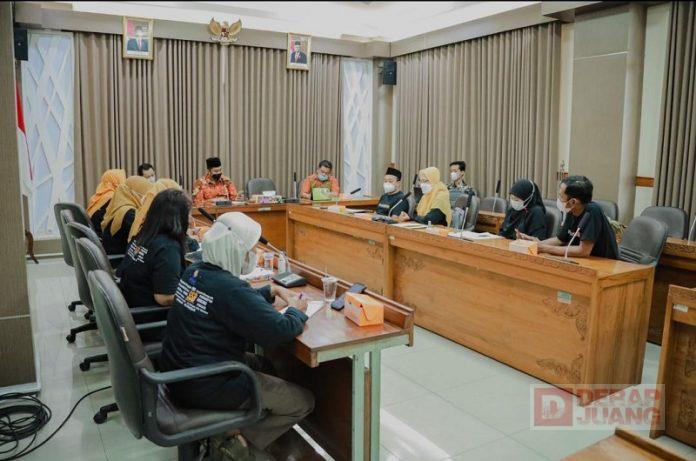 Kabupaten Klaten – Ketua DPRD Klaten, Hamenang Wajar Ismoyo, S.I.Kom melakukan audiensi bersama Wakil Ketua DPRD, Komisi IV, dan Simpul Sinau Bareng (SSB) guna membahas peningkatan pelayanan kesehatan, khususnya ibu dan bayi di ruang Kantor Pemerintah Daerah Kabupaten Klaten, Sabtu (19/3/2022).