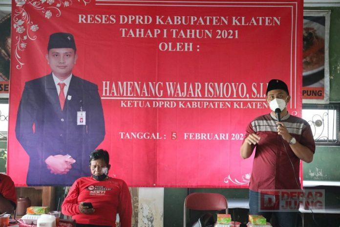 Kabupaten Klaten – Ketua DPRD Kab. Klaten, Hamenang Wajar Ismoyo menggelar Reses untuk menyerap berbagai aspirasi masyarakat di wilayah Kec. Trujuk, Kab. Klaten, Jumat (5/2/2021).