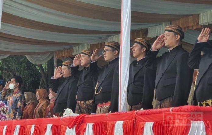 Kabupaten Karanganyar – Seluruh Forkompinda Karanganyar menghadiri upacara dalam rangka memperingati Hari Jadi Kabupaten Karanganyar Ke-105 yang digelar di Alun-alun Karanganyar, Jumat (18/11/2022).