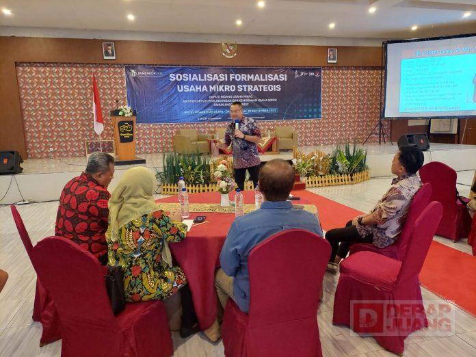 Bertempat di Syailendra Convention Hall, Hotel Grand dian Slawi, acara sosialisasi tersebut dihadiri Sekretaris Kementerian Koperasi, Ir.Arif Rahman Hakim, MSi, dan diikuti oleh 120 peserta perwakilan dari para pelaku usaha mikro kecil se-Kabupaten Tegal, serta para olahan pengrajin seperti kayu mebeler dan yang lainya.