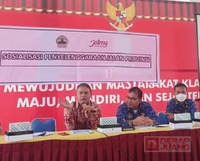 Kabupaten Klaten – Anggota Fraksi PDI Perjuangan DRPD Jawa Tengah, Hartanto bersinergi dengan Dinas Bina Marga dan Anggota DPRD Klaten, Aris Widiarto menggelar sosialisasi penyelenggaraan jalan provinsi di Kantor Kecamatan Manisrenggo, Jumat (18/11/2022).