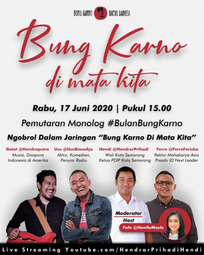 Kota Semarang – Memperingati Bulan Bung Karno, Wali Kota Semarang, Hendrar Prihadi menggelar sebuah dialog daring (dalam jaringan) dengan mengangkat tema “Bung Karno di Mata Kita”.