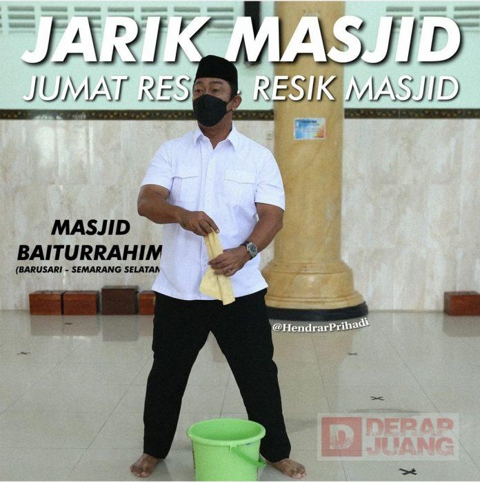 Kota Semarang – Sempat terhenti karena adanya pandemi Covid-19 pada tahun 2020, Wali Kota Semarang Hendrar Prihadi kembali mengajak seluruh elemen untuk ikut dalam gerakan Jarik Masjid (Jumat Resik-Resik Masjid), yang diinisiasinya sejak tahun 2018.