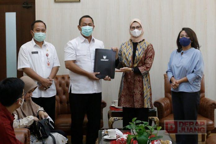 Kota Semarang – Wali Kota Semarang, Hendrar Prihadi dan Ketua TP PKK Kota Semarang, Krisseptiana Hendrar Prihadi menerima kunjungan dari Staf Khusus Presiden RI Bidang Sosial, Angkie Yudistia. Adapun kunjungan kerja tersebut secara khusus difokuskan untuk memberi perhatian kepada pelaku Usaha Mikro Kecil Menengah (UMKM) di Kota Semarang yang berasal dari penyandang Disabilitas, Rabu (02/06/2021).