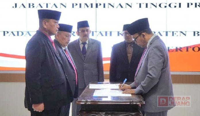 Kabupaten Banyumas – Bupati Banyumas, Ir. Achmad Husein melantik dan mengambil sumpah 2 pejabat dalam Jabatan Pimpinan Tinggi Pratama (JPTP), yaitu Asisten Pemerintahan dan Kesra serta Asisten Asisten Perekonomian dan Pembangunan. Pelantikan dilakukan di Purwokerto Smart Room Graha Satria Jum’at sore (14/7/2023).