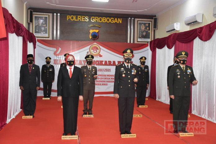 Kab. Grobogan sendiri puncak peringatan dan upacara Hari Bhayangkara diperingati dengan sederhana di Mapolres Grobogan. Hal ini berhubung saat ini Indonesia masih berada di tengah pandemi Covid-19.