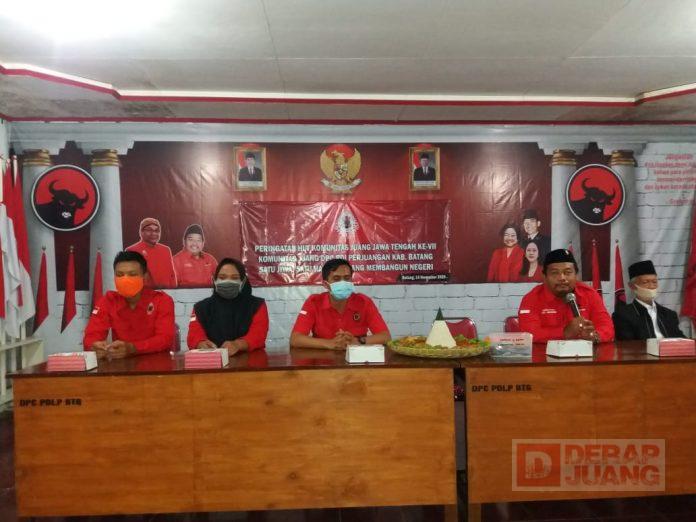 Kabupaten Batang – Kader Komunitas Juang Kab. Batang turut merayakan Hari Ulang Tahun (HUT) Komunitas Juang Jawa Tengah yang ke-7. Kader Komunitas Juang Kab. Batang mengikuti Perayaan HUT Komunitas Juang Jawa Tengah secara virtual di Kantor DPC PDI Perjuangan Kab. Batang, Sabtu (14/11/2020).