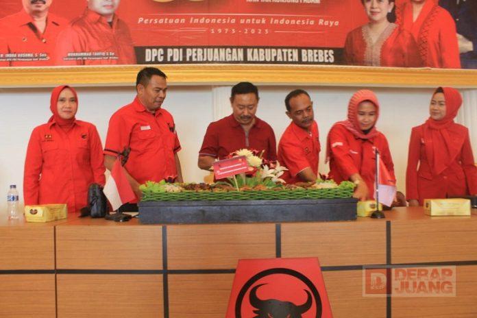Dalam kesempatan tersebut, Bapak Ketua DPC PDI Perjuangan Kabupaten Brebes Indra Kusuma yang hadir, memberikan sambutan dan wejangan kepada para hadirin terkait persiapan pemenangan menuju Pemilu 2024.