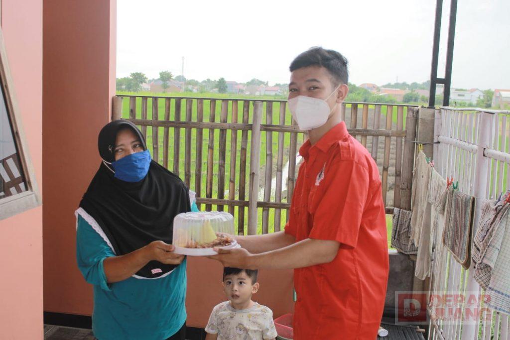 Penyerahan Tumpeng oleh Kader Komunitas Juang Kab. Brebes kepada masyarakat, dalam rangka memperingati HUT PDI Perjuangan ke-48