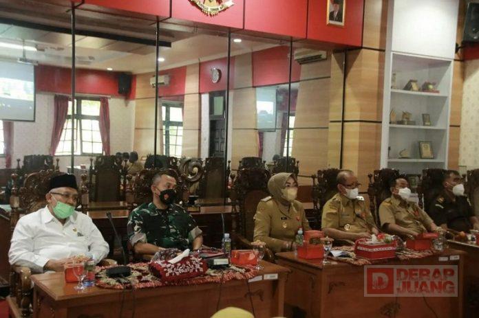 Kabupaten Grobogan – Bupati Grobogan, Sri Sumarni bersama Wakil Ketua Bupati Bambang Pujiyanto, serta perangkat daerah terkait mengikuti secara daring pembukaan masa Musyawarah Perencanaan Pembangunan (Musrenbang) tahun 2022.