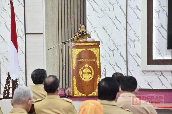 “Sasaran program atau kegiatan agar lebih diarahkan untuk bisa memberikan nilai tambah, daya ungkit serta manfaat langsung bagi masyarakat dan kemajuan daerah. Setiap perangkat daerah saya wajibkan minimal bisa mengembangkan satu inovasi. Inovasi bisa di bidang pelayanan publik, pemberdayaan masyarakat, peningkatan daya saing daerah, maupun bidang lainnya sesuai kewenangan dan urusan pemerintah daerah yang diampu,” tandas Bupati.