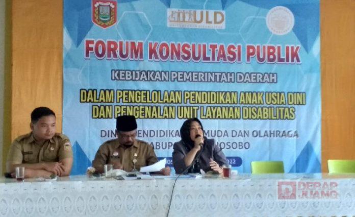 Kabupaten Wonosobo – Wakil Ketua Komisi D yang membidangi pendidikan, Izanatul Muzi’ah, S.Pd yang juga sebagai Bendahara DPC PDI Perjuangan Wonosobo dan sekaligus KomandanTe Bintang Dua mendengarkan keluh kesah Guru Honorer PAUD Wonosobo dalam agenda Forum Konsultasi Publik Kebijakan Pemerintah Daerah dalam Pengelolaan Pendidikan Anak Usia Dini dan Pengenalan Unit Disabilitas di Resto Sari Rasa Wonosobo, Rabu (16/11/2022).