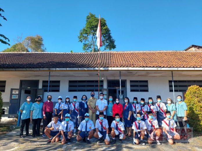 Kota Salatiga – Anggota Fraksi PDI Perjuangan DPRD Kota Salatiga, Faradila Herdhini menjadi pembina upacara di SMP Kristen 1 Salatiga. Dalam amanatnya, Dhini menyampaikan tentang Pancasila sebagai Ideologi Bangsa dalam penerapan di kehidupan sehari-hari, Senin (8/7/2022).
