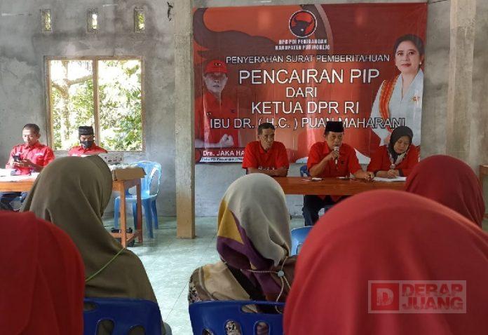 Dalam sambutannya, Jaka Hartana menyampaikan bahwa beasiswa program PIP ini berasal dari Mbak Puan Maharani selaku Ketua DPR RI. Adapun orang tua/wali murid dikumpulkan dalam kesempatan ini adalah untuk memudahkan koordinasi.