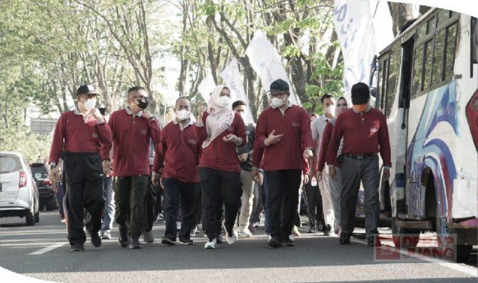 “Dan salah satu perwujudan yang kemudian kita lakukan adalah dengan berjalan sehat bersama yang diikuti oleh seluruh jajaran pegawai di lingkungan Pemerintahan Kabupaten Demak; tanpa terkecuali,” ucap Bupati.