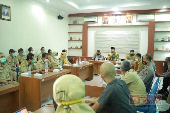 Kabupaten Klaten – Menjelang Hari Raya Idul Adha, Ketua DPRD Klaten, Hamenang Wajar Ismoyo, S.I.Kom menggelar Rapat Koordinasi (Rakor) terkait Penanganan Penyakit Mulut dan Kuku (PMK) pada Hewan Ternak di Kantor Dinas Pertanian Dan Ketahanan Pangan Kabupaten Klaten, Senin (23/5/2022).