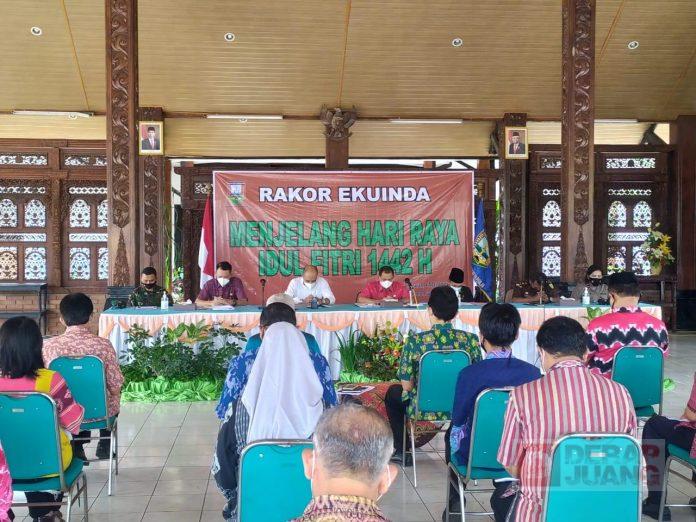“Kita berusaha menjaga stabilitas harga dan ketersediaan bahan pokok yang dibutuhkan masyarakat. Hal ini menjadi prioritas daerah selain antisipasi penyebaran virus Covid-19 karena ada pergerakan warga dari luar kota atau mudik lebaran,” pungkas Bupati Semarang H. Ngesti Nugraha usai memimpin rapat koordinasi Ekuinda di Pendopo Rumah Dinas Bupati Semarang, Selasa (4/5/2021).