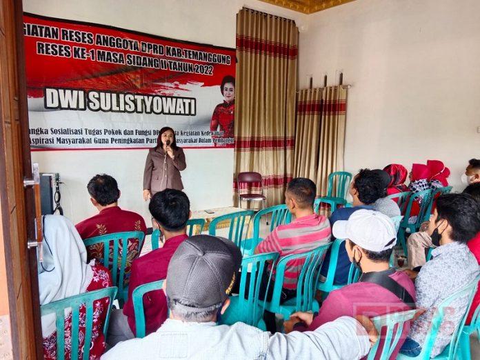 Kabupaten Temanggung – KomandanTe Bintang Dua Dapil 6 Temanggung, Dwi Sulistyowati menggelar acara reses sekaligus konsolidasi bersama jajaran struktural Partai. Adapun giat ini diselenggarakan di kediamannya yang beralamat Desa Kupen, Kecamatan Pringsurat, Sabtu (26/3/2022).