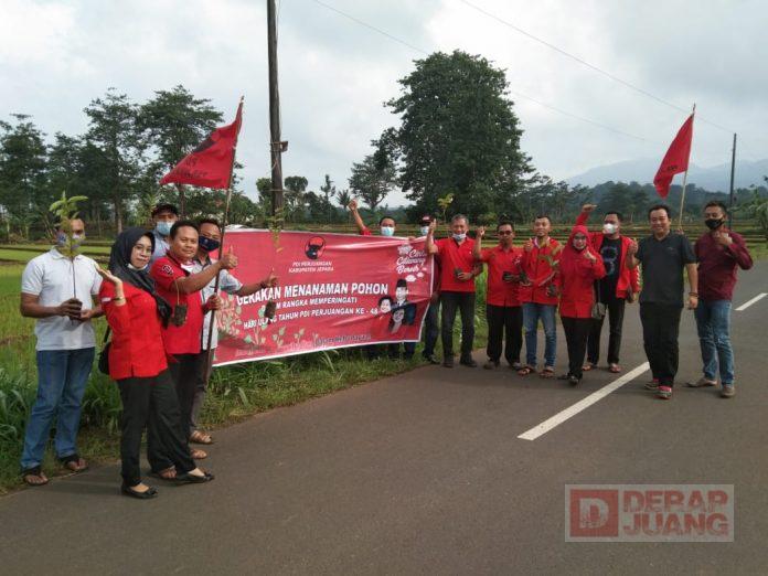 Kabupaten Jepara – Sekretaris DPC PDI Perjuangan dan pengurus PAC Kec. Keling, Kab. Jepara melaksanakan penanaman 5.000 bibit pohon yang disebar pada 16 kecamatan di Kab. Jepara, salah satunya dilaksanakan di Desa Watuaji, Keling Jepara, Sabtu (23/1/2021).